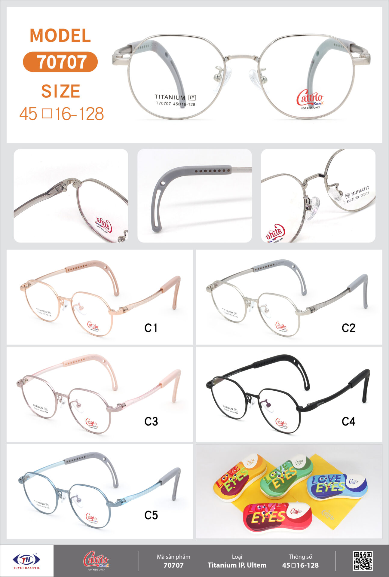 – Viền gọng sử dụng chất liệu titanium kết hợp với càng ultem siêu nhẹ nên giảm tối đa áp lực đè lên sống mũi và vành tai, rất phù hợp cho bé phải thường xuyên đeo mắt kính