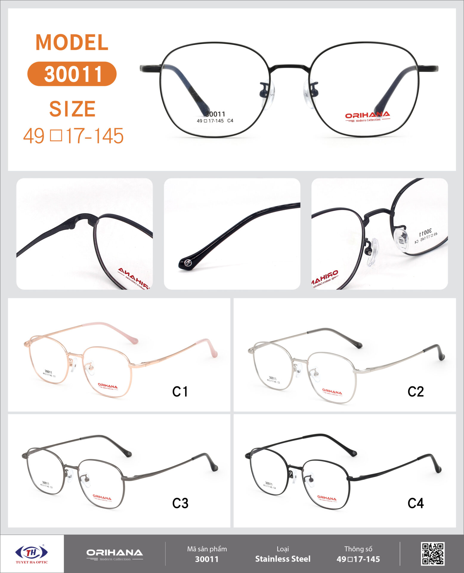 – Chất liệu: Stainless Steel là chất liệu thép không gỉ cao cấp, nổi bật với độ bền cao, khả năng chống ăn mòn và oxy hóa vượt trội. Gọng kính làm từ Stainless Steel có trọng lượng nhẹ, hạn chế biến dạng trong quá trình sử dụng.