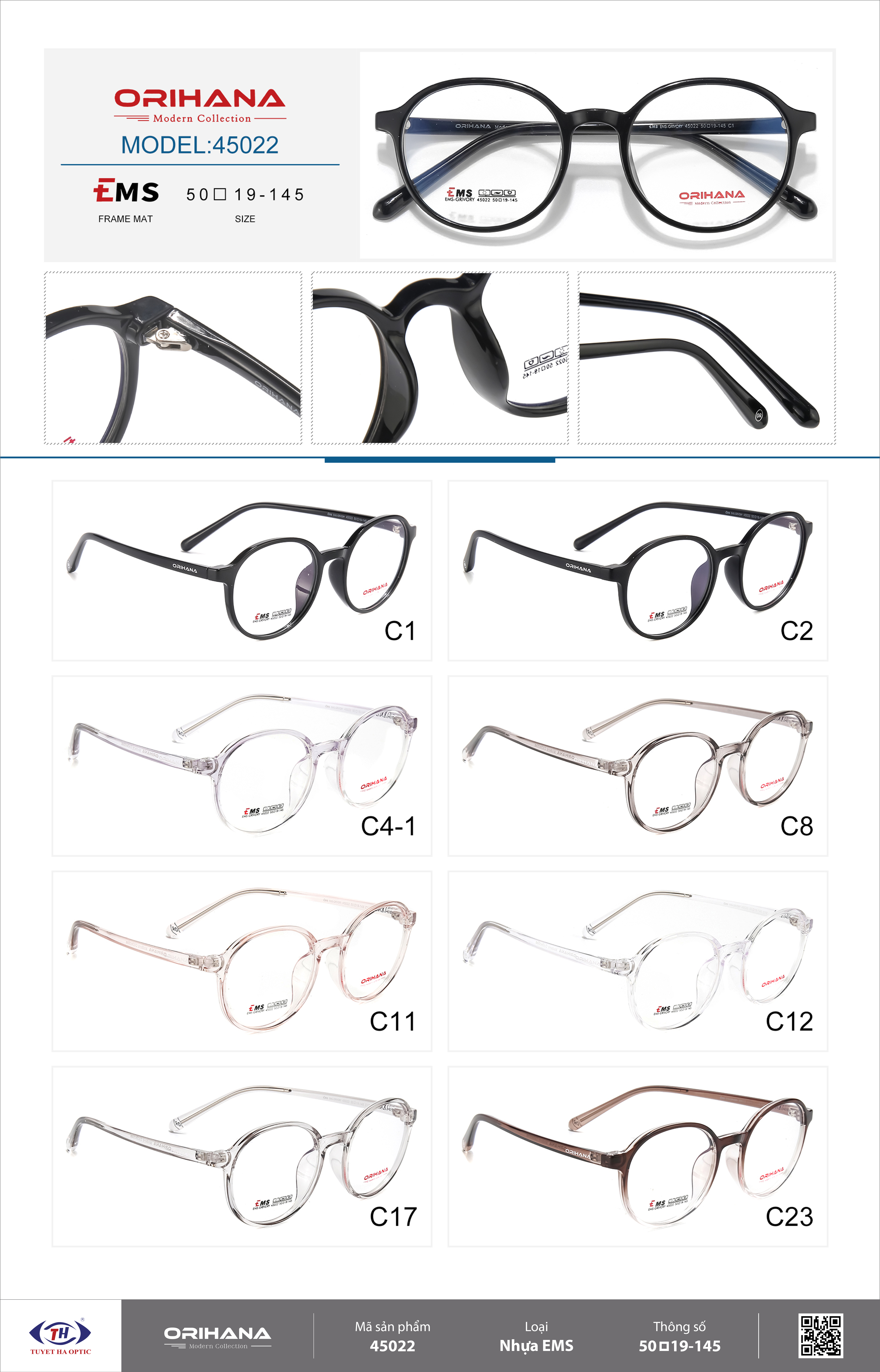 – Chất liệu: EMS thường được gọi là Grilamid TR là một loại polyamide nhiệt dẻo trong suốt, được biết đến với độ bền cao, khả năng chịu nhiệt tốt. Ngoài ra, EMS được chế tác với công nghệ cao giúp gọng kính luôn sáng bóng và bền màu.