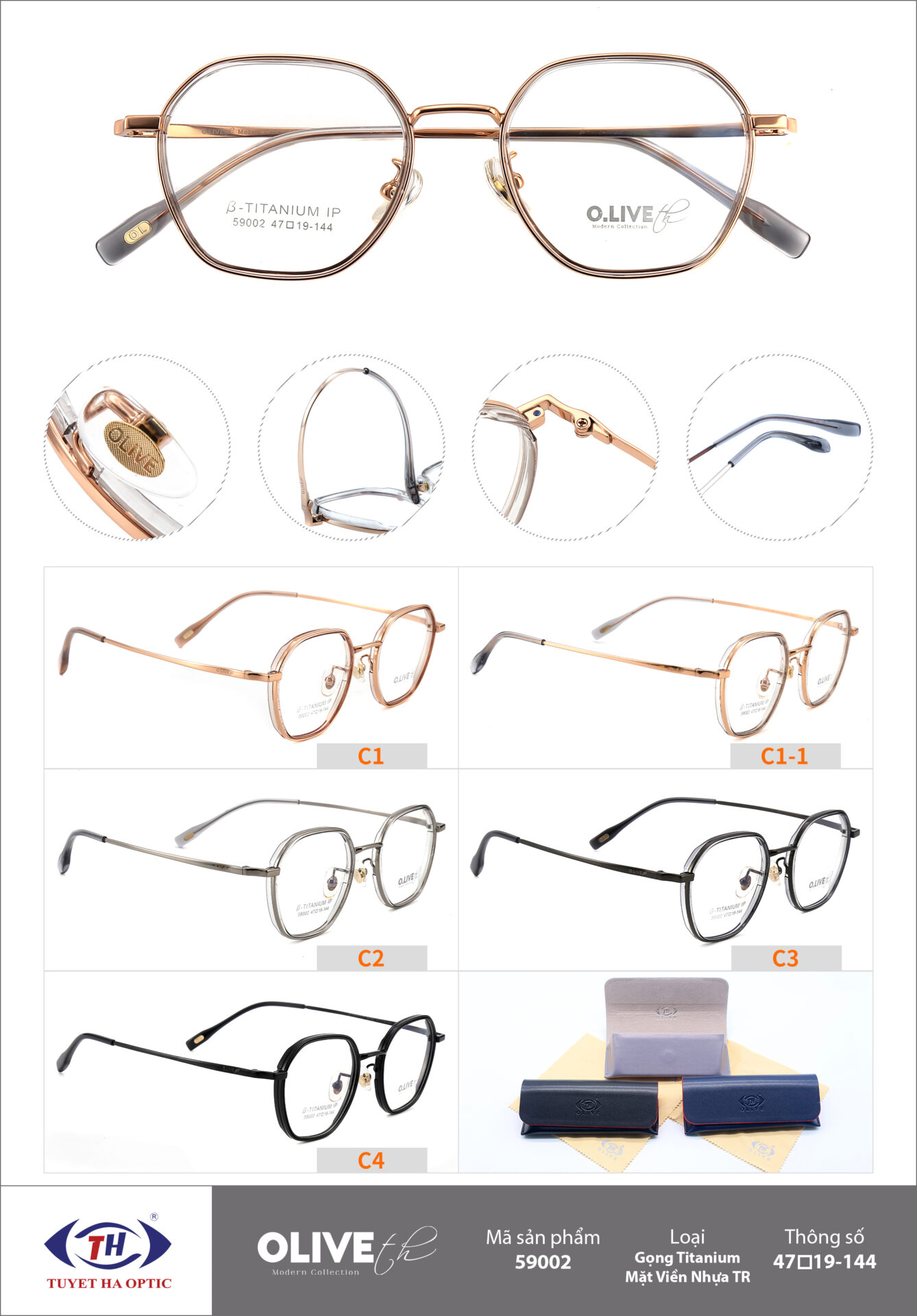 Thông tin chi tiết gọng kính Olive Titanium Mặt Viền Nhựa TR: