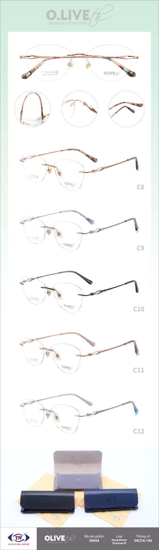 Thông tin chi tiết gọng kính Titanium Olive:
